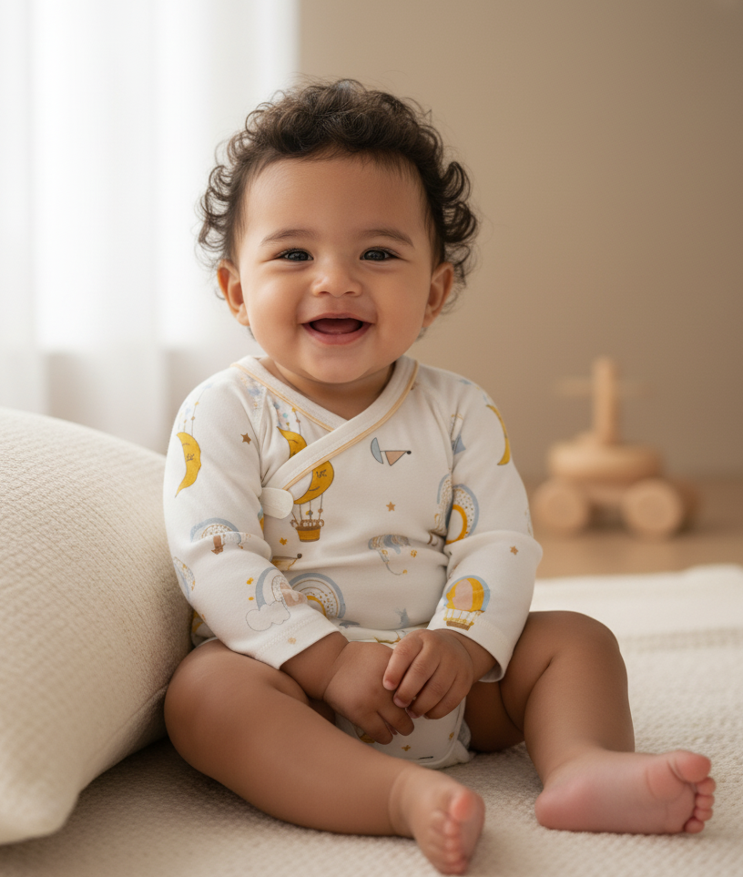 🎈Ligero, práctico y lleno de ternura 💛. Este pañalero ajustable 100% algodón ofrece suavidad y confort en cada movimiento, cuidando la piel de tu bebé mientras facilita los cambios rápidos gracias a su diseño cruzado con moñitos ✨.